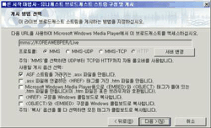 Windows Media ½ºÆ®¸²À» À¥ ÆäÀÌÁö¿¡¼ Àç»ýÇÏ°Ô µÇ´Â <OBJECT> ÅÂÅ©¸¦ Æ÷ÇÔÇÑ HTML ÆäÀÌÁö¸¦ »ý¼ºÇÒ À§Ä¡¸¦ ¼±ÅÃÇϴ âÀÔ´Ï´Ù. |